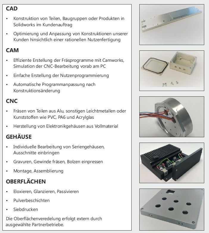 • CNC-Fertigung von Gehäusen und Mechanikteilen